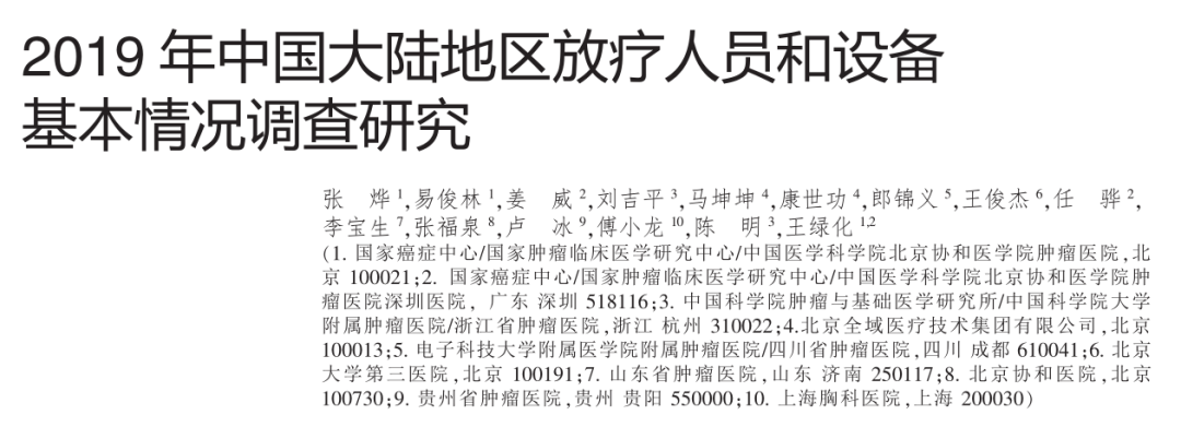 近日,《2019年中國大陸地區(qū)放療人員和設(shè)備》發(fā)表于《中國腫瘤》雜志,在行業(yè)中造成了不小的轟動。我們看到在本次作者中,有很多行業(yè)大佬還有企業(yè)人員參與了本次調(diào)研,感謝他們?yōu)榉暖熜袠I(yè)作出的貢獻。