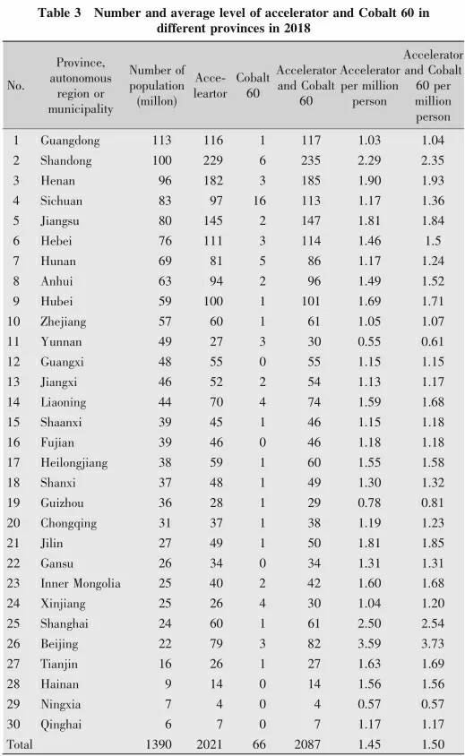 各省、自治區(qū)、直轄市的直線加速器及鈷60設(shè)備數(shù)以及人均情況詳見表3(Table 3)。